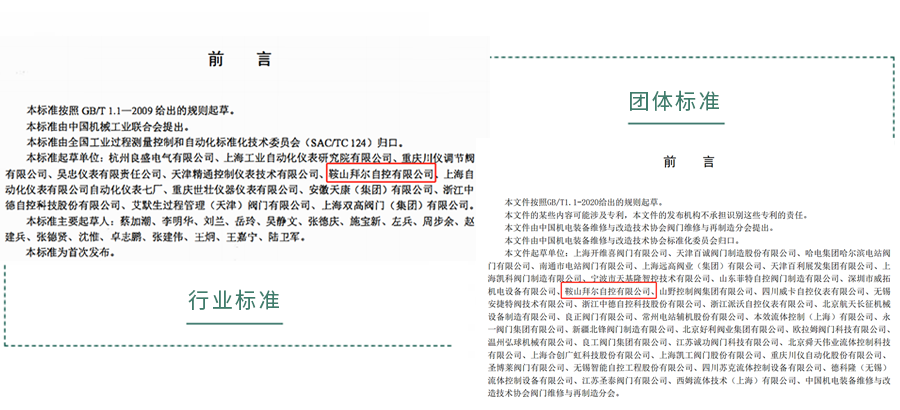 公司是全國工業(yè)過程測量控制和自動(dòng)化標(biāo)準(zhǔn)化技術(shù)委員會(huì)(SAC/TC124)委員單位,承擔(dān)過程工業(yè)儀表標(biāo)準(zhǔn)的審定。公司是中國儀器儀表學(xué)會(huì)產(chǎn)品信息委員會(huì)的委員單位。共參與起草7項(xiàng)國家、行業(yè)、團(tuán)體標(biāo)準(zhǔn)。